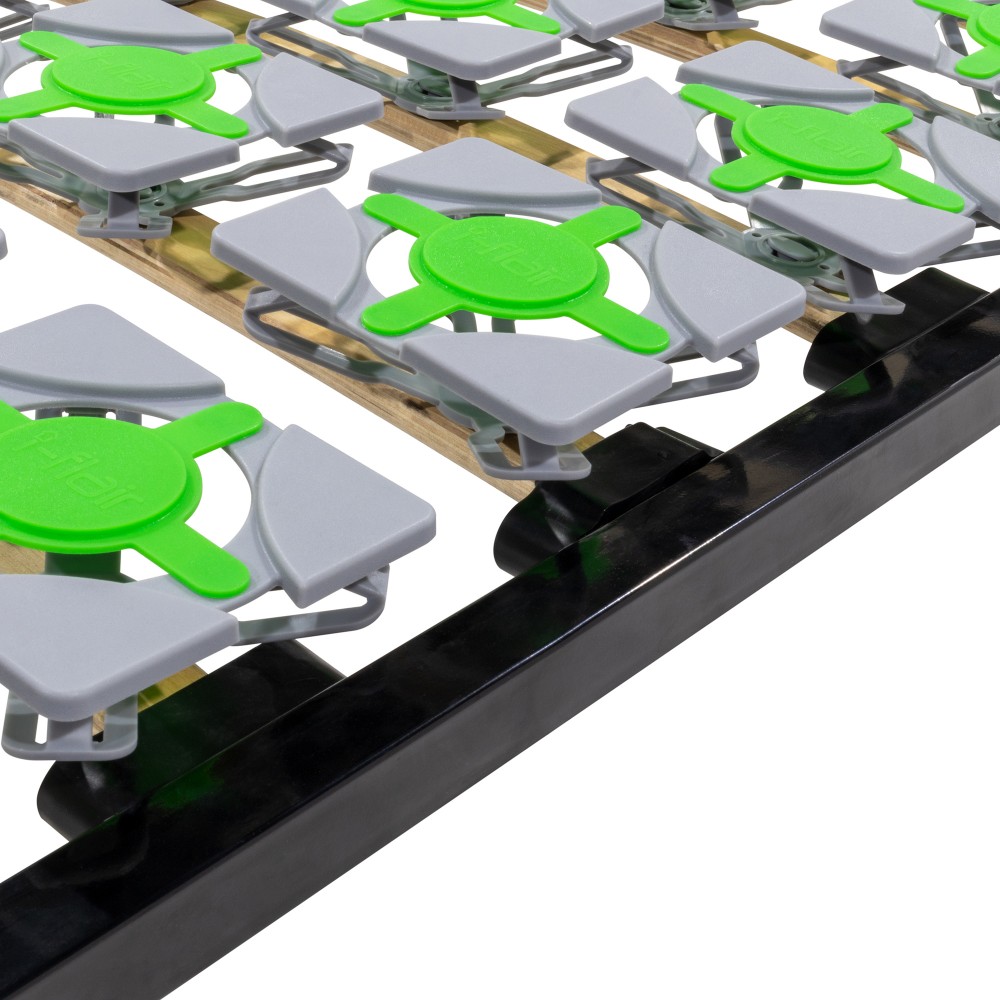Ce sommier à lattes innovant dispose de plots de soutien sur les lattes centrales pour soutenir le corps en douceur et éviter les maux de dos.