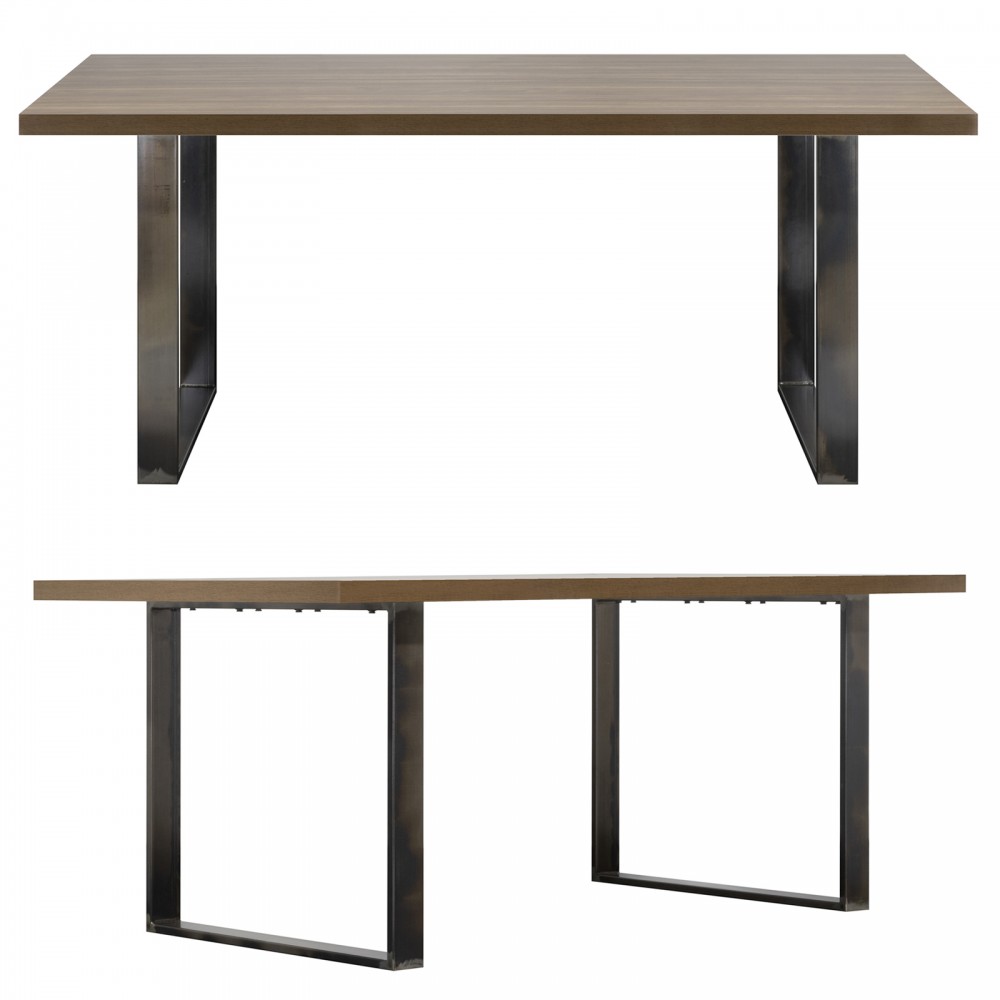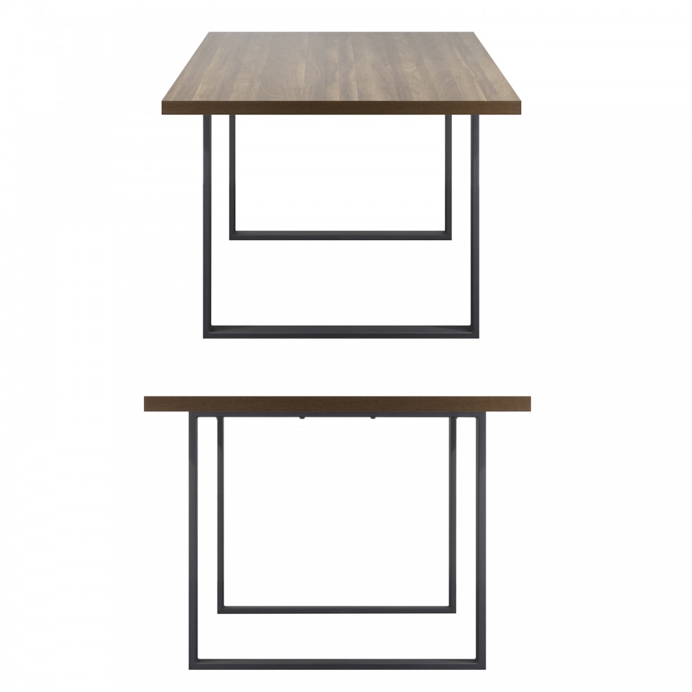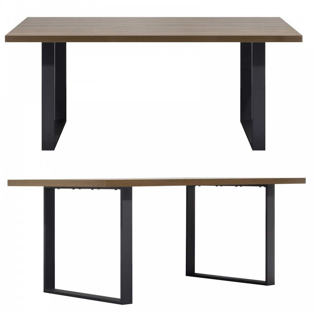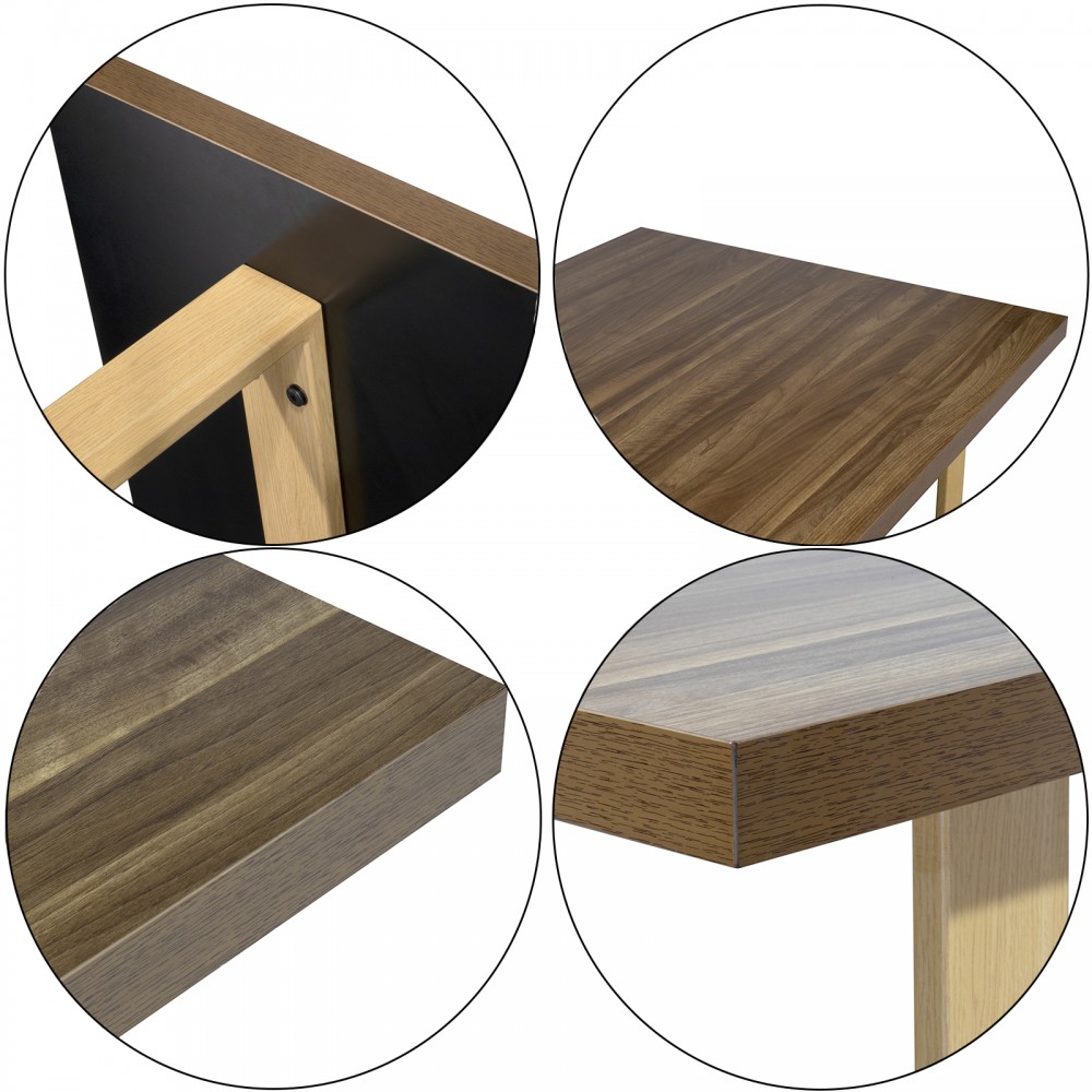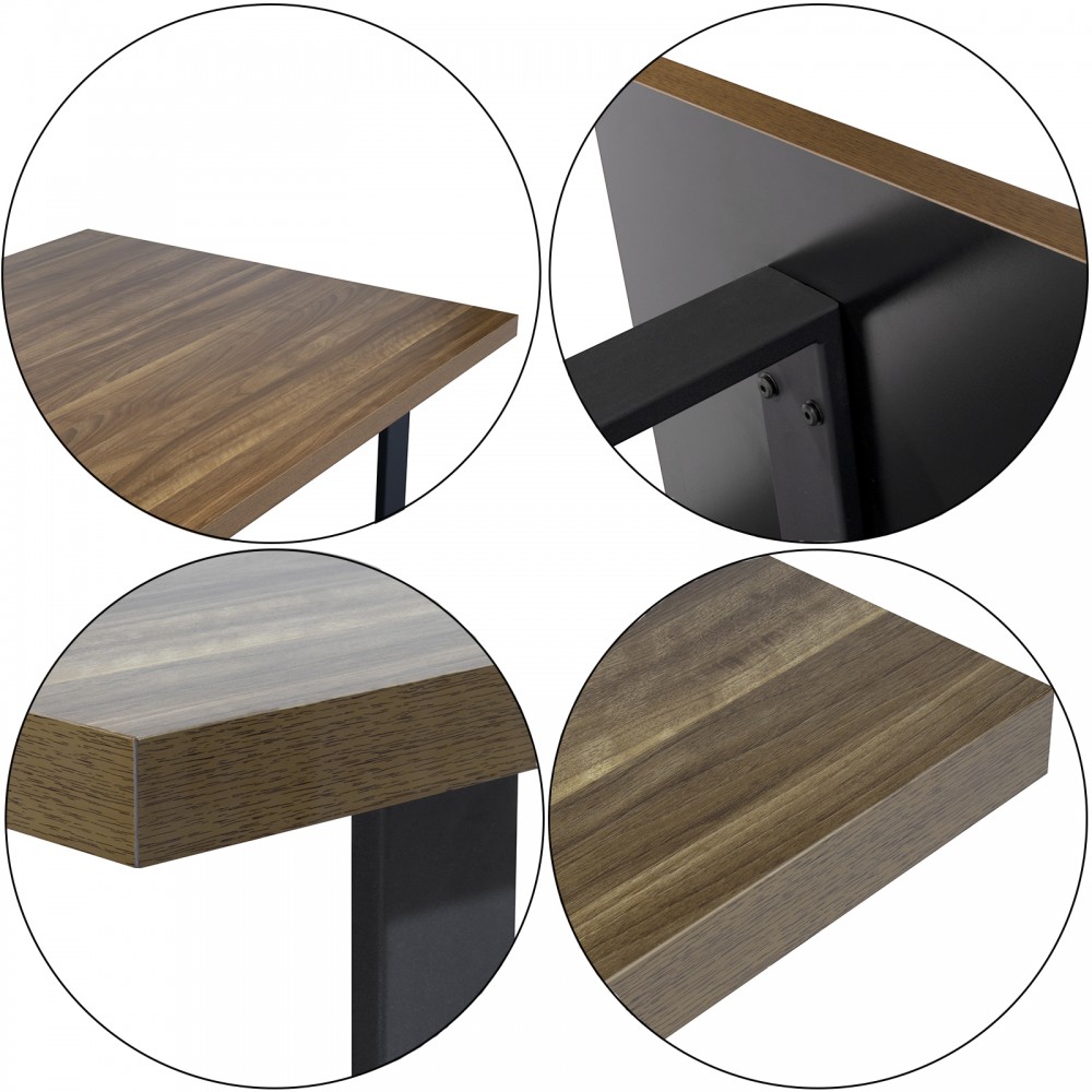 | bulletpointB | Plateau en MDF aspect chêne ou noyer, pieds en forme de U en acier noir ou avec une finition noir ou bois. |
