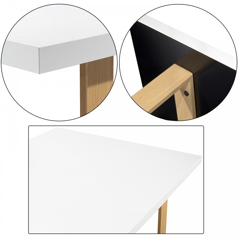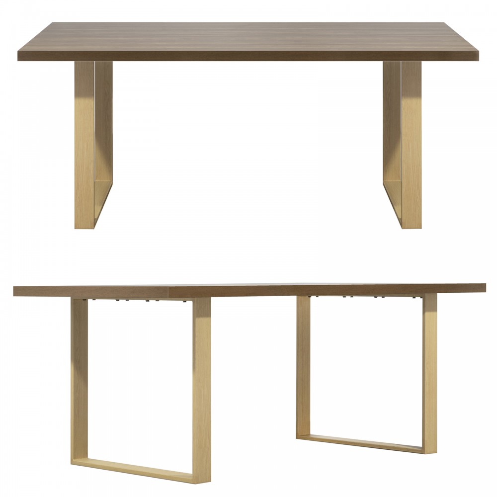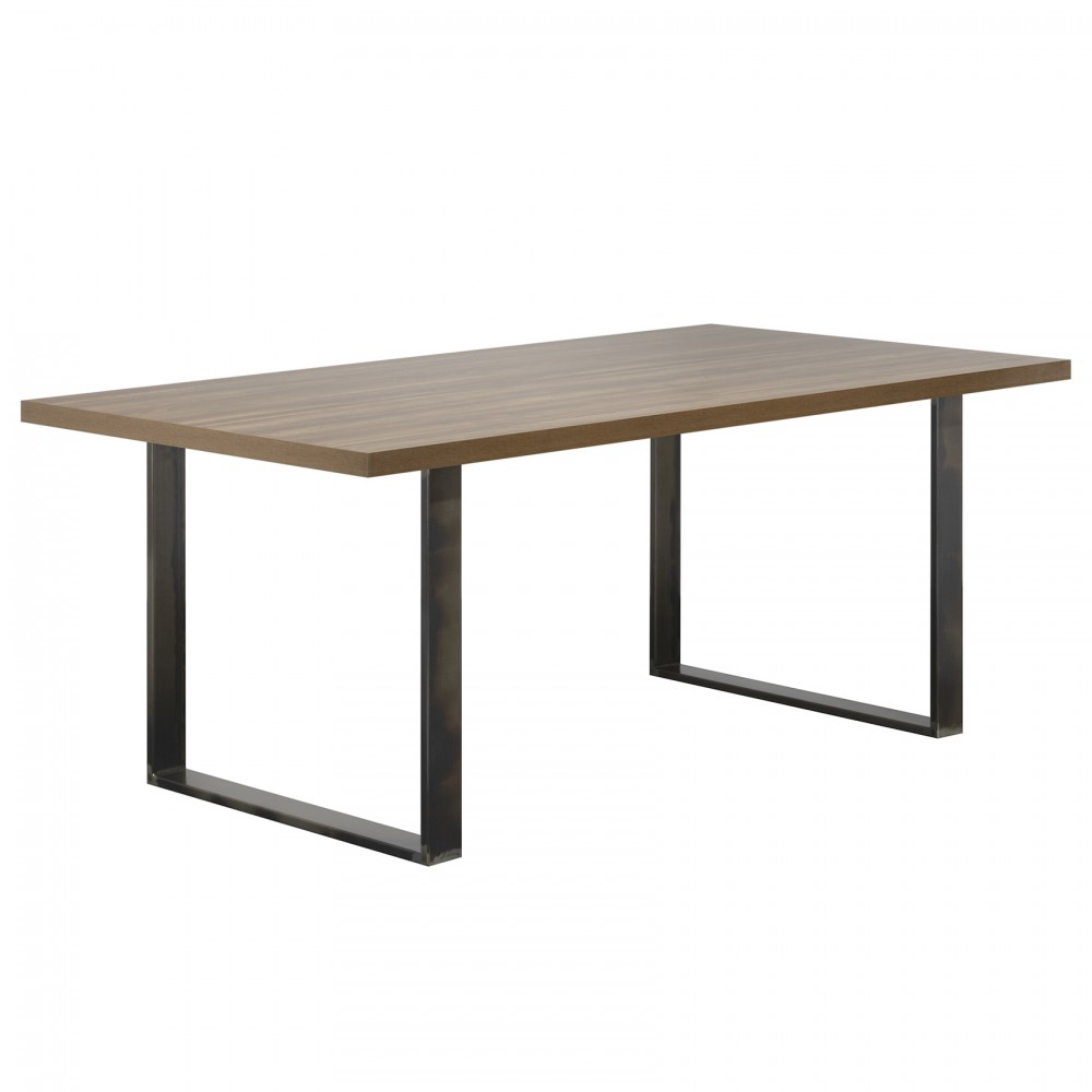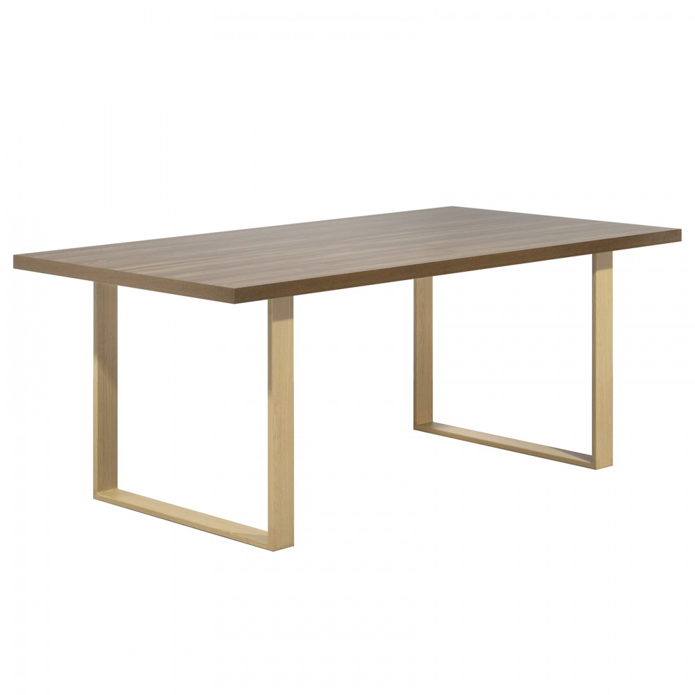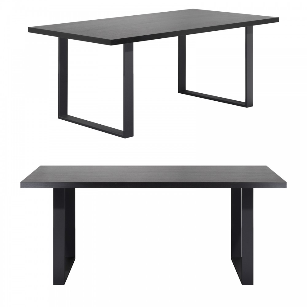 | bulletpointB | Plateau en MDF aspect chêne ou noyer, pieds en forme de U en acier noir ou avec une finition noir ou bois. |
