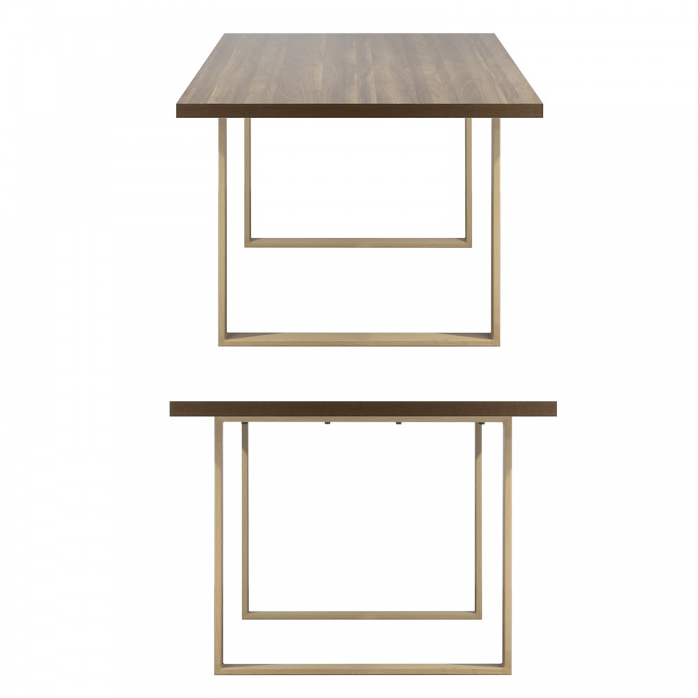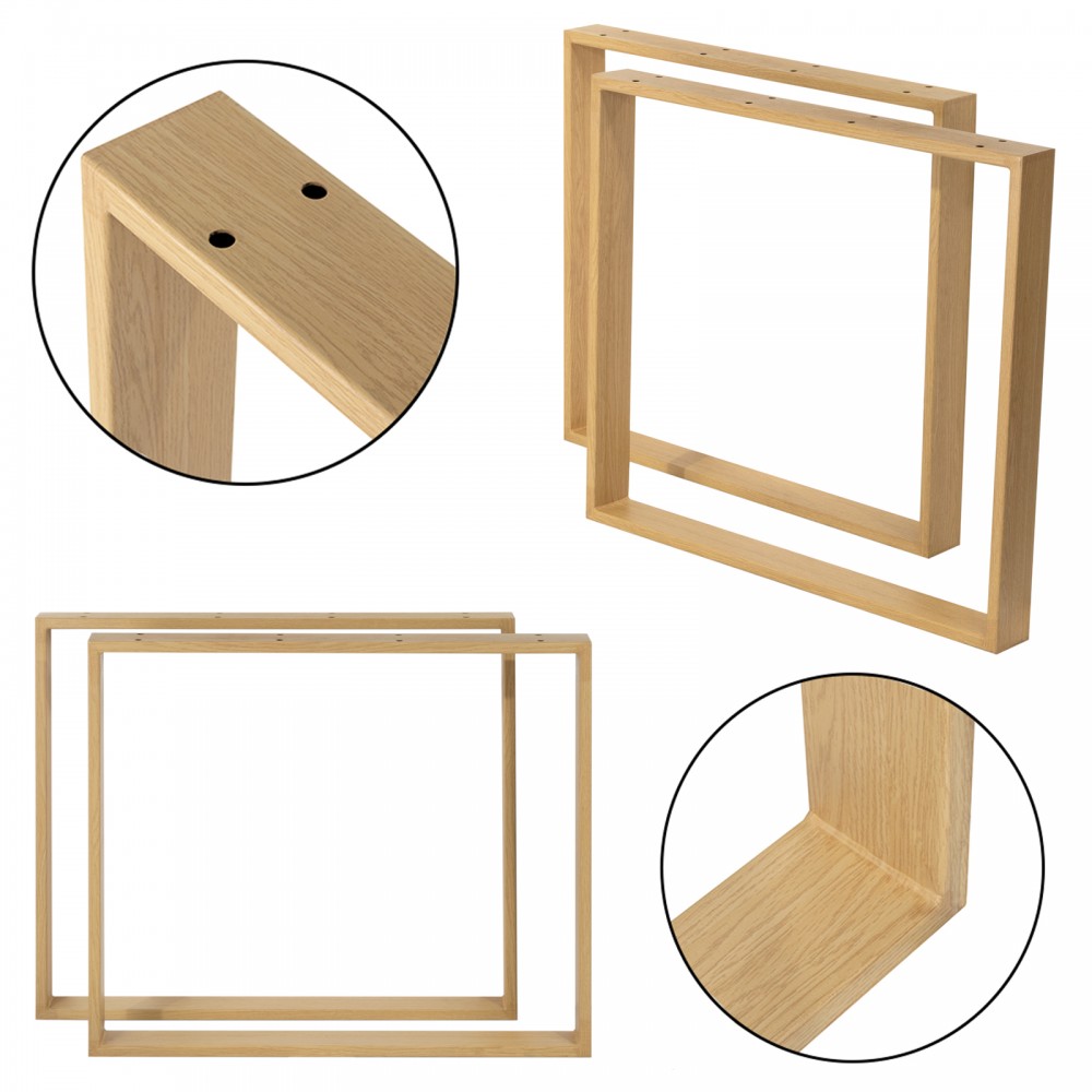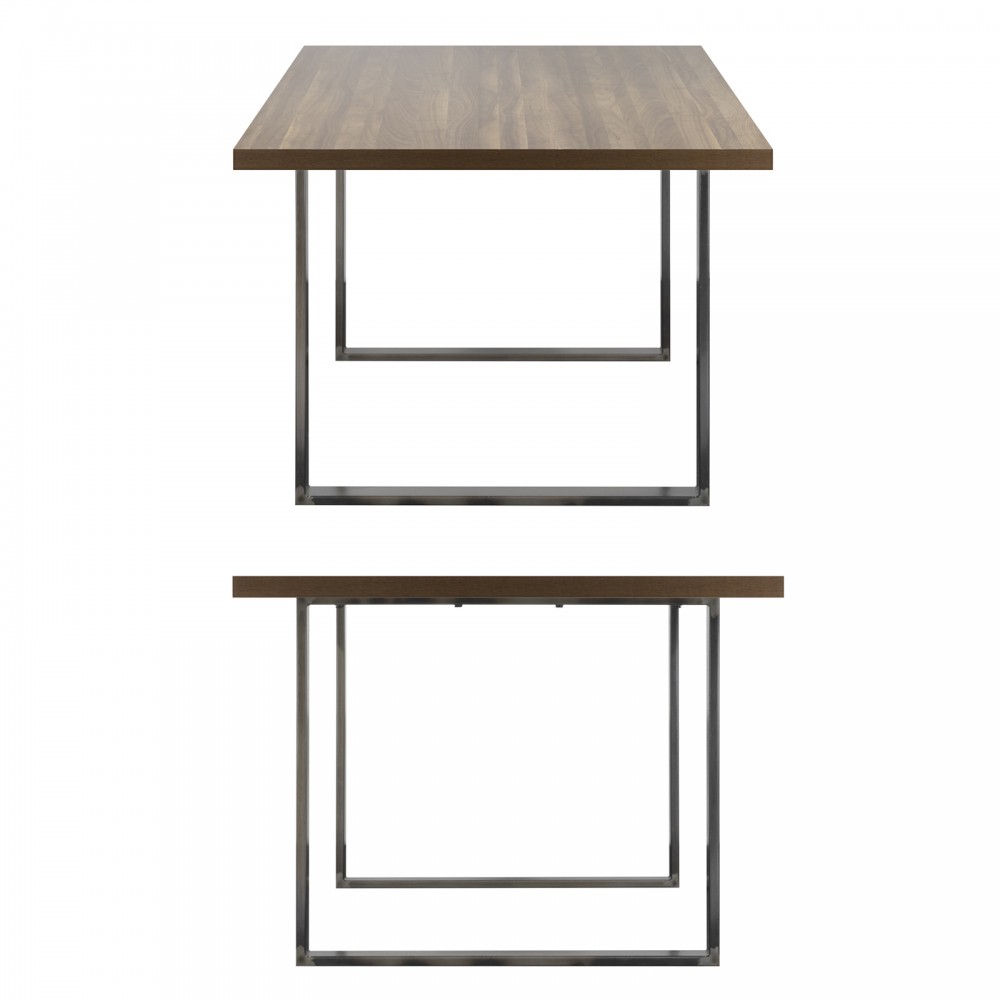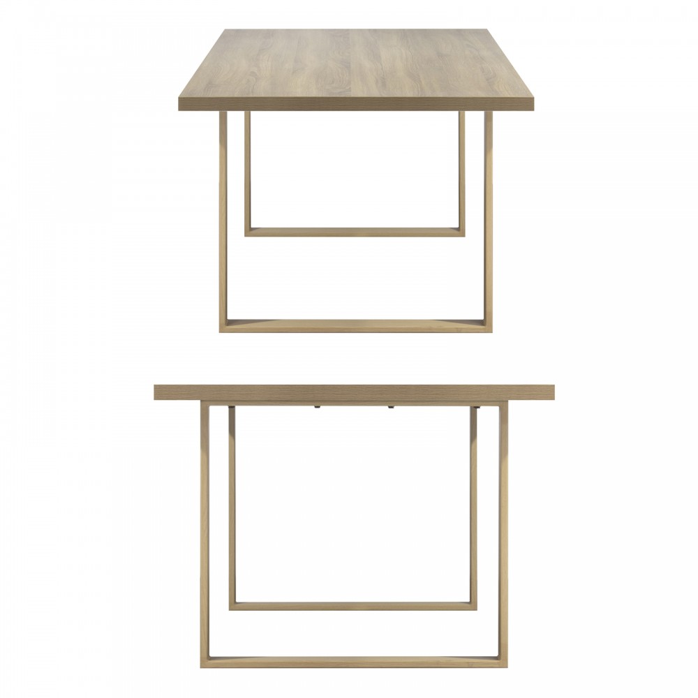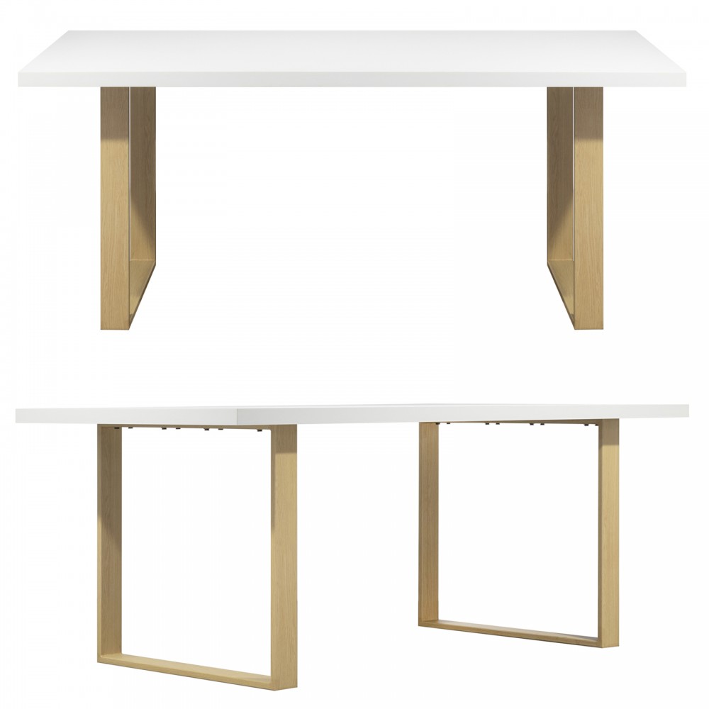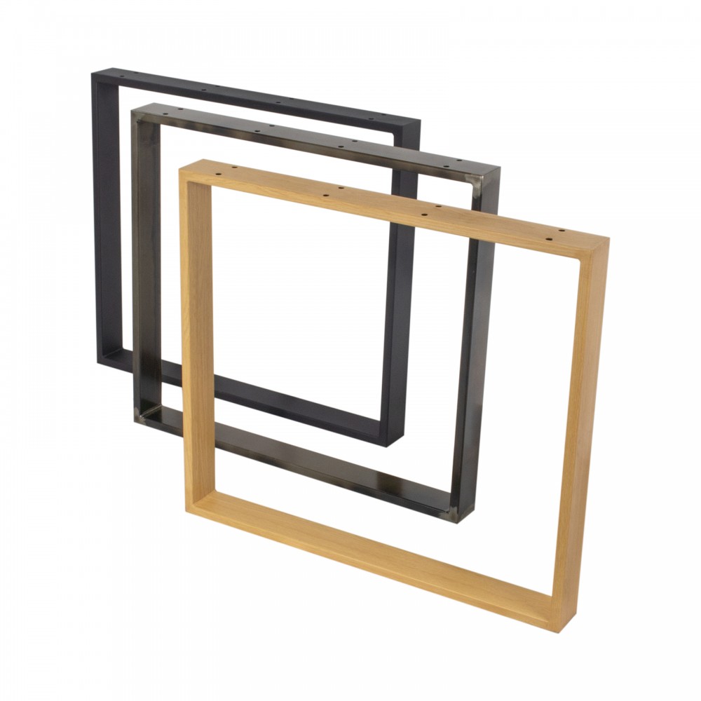 | bulletpointB | Plateau en MDF aspect chêne ou noyer, pieds en forme de U en acier noir ou avec une finition noir ou bois. |