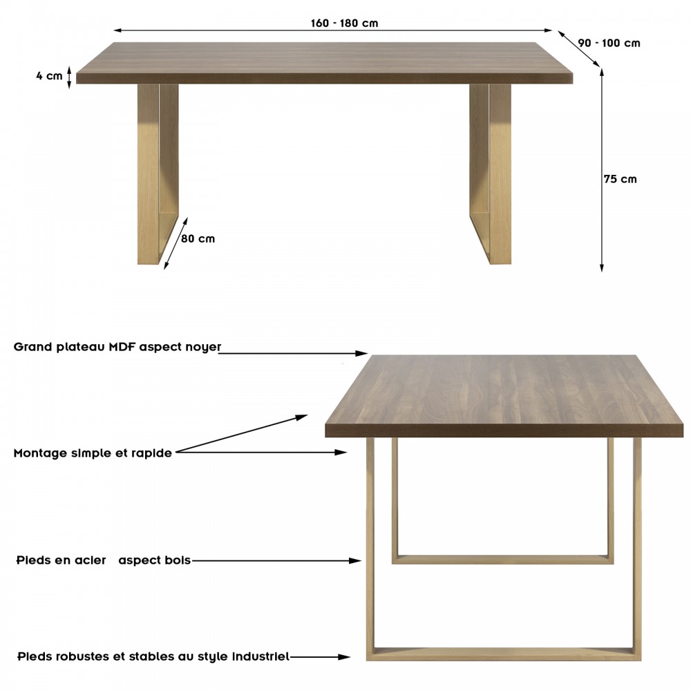 | bulletpointC | Table moderne style industriel hauteur 75 cm. |